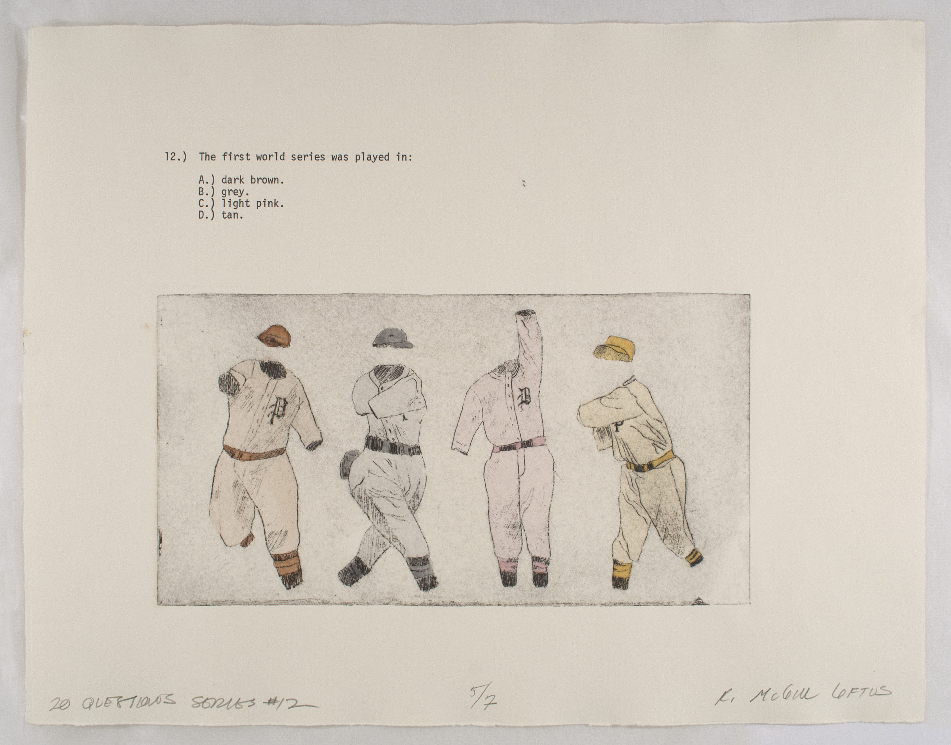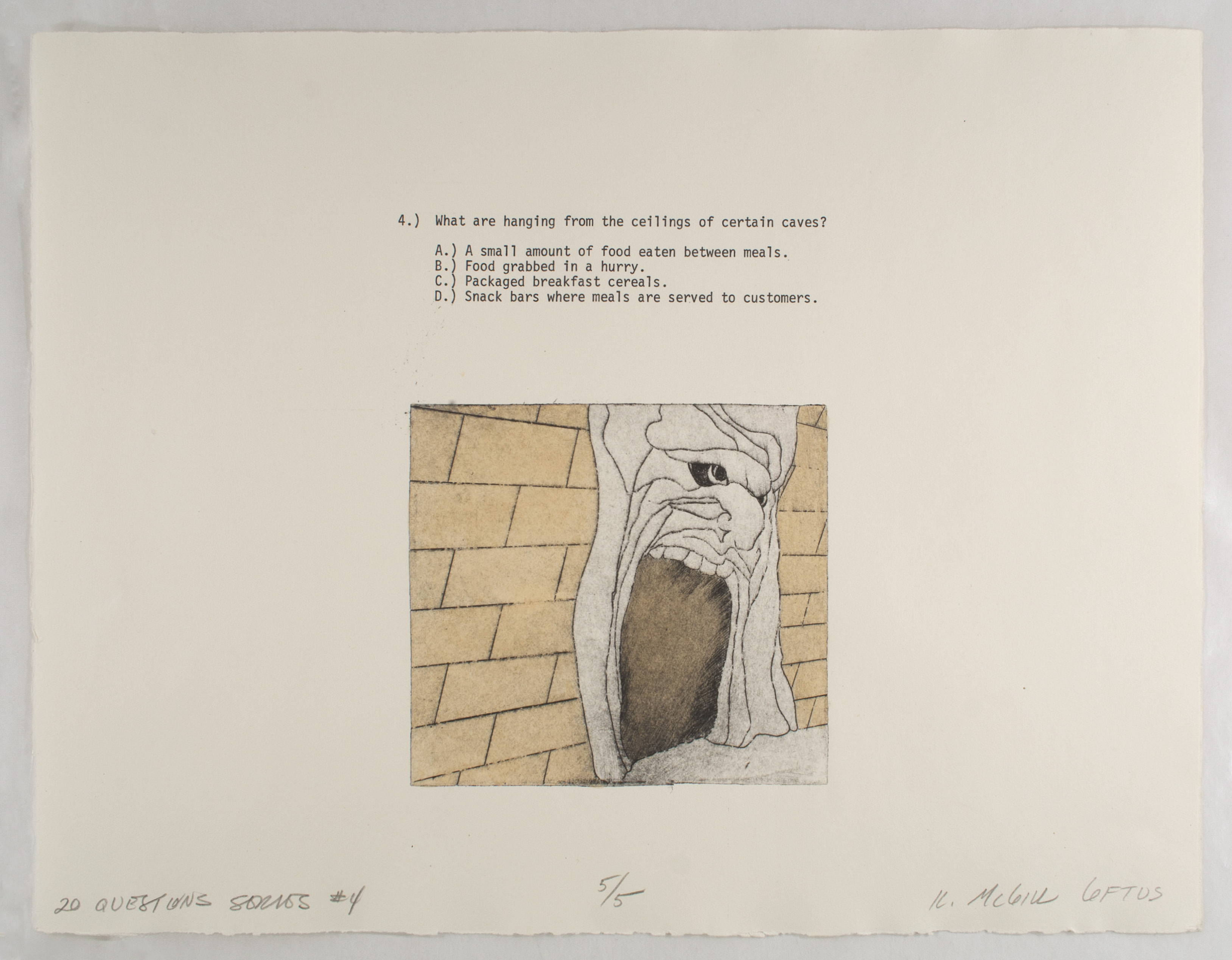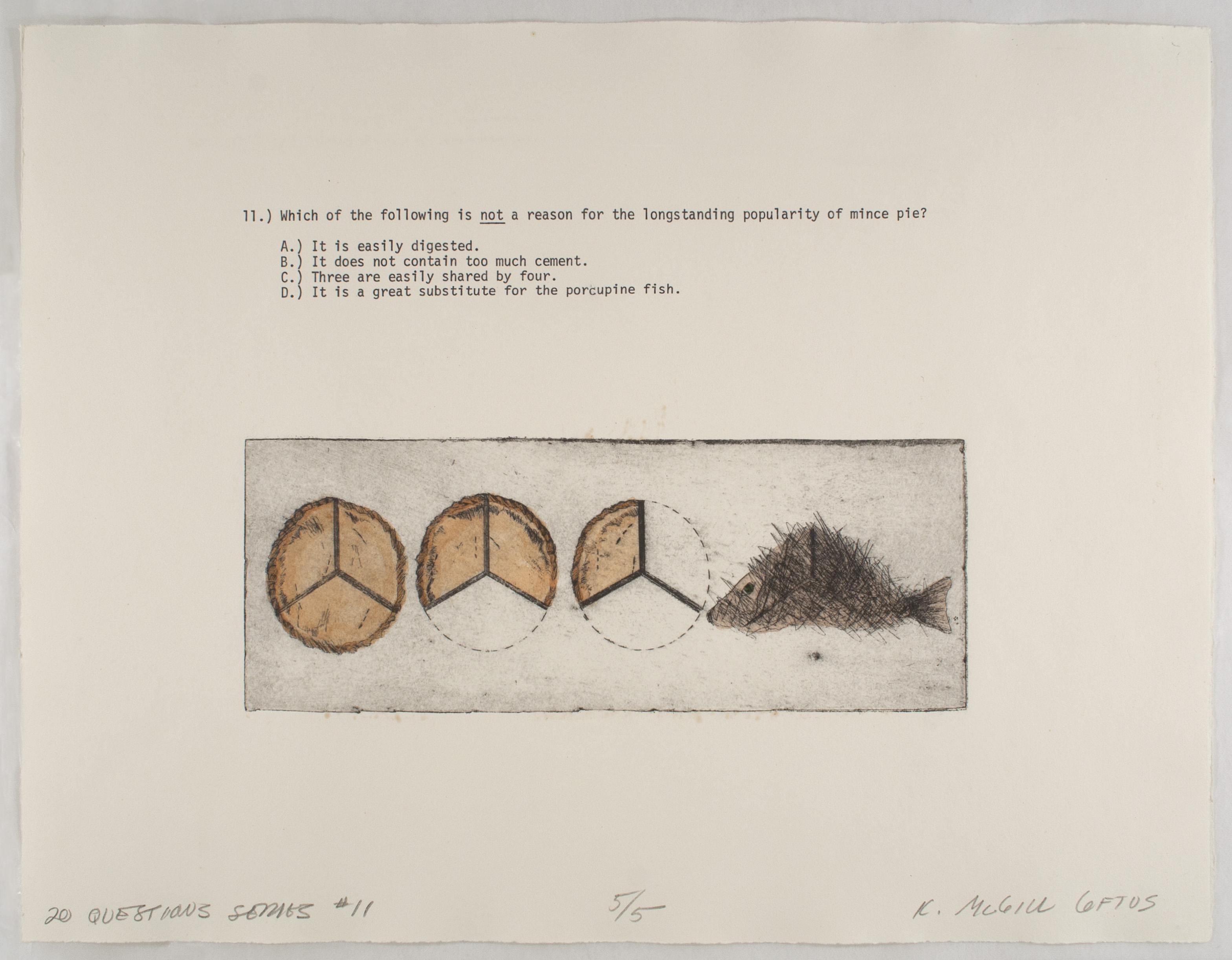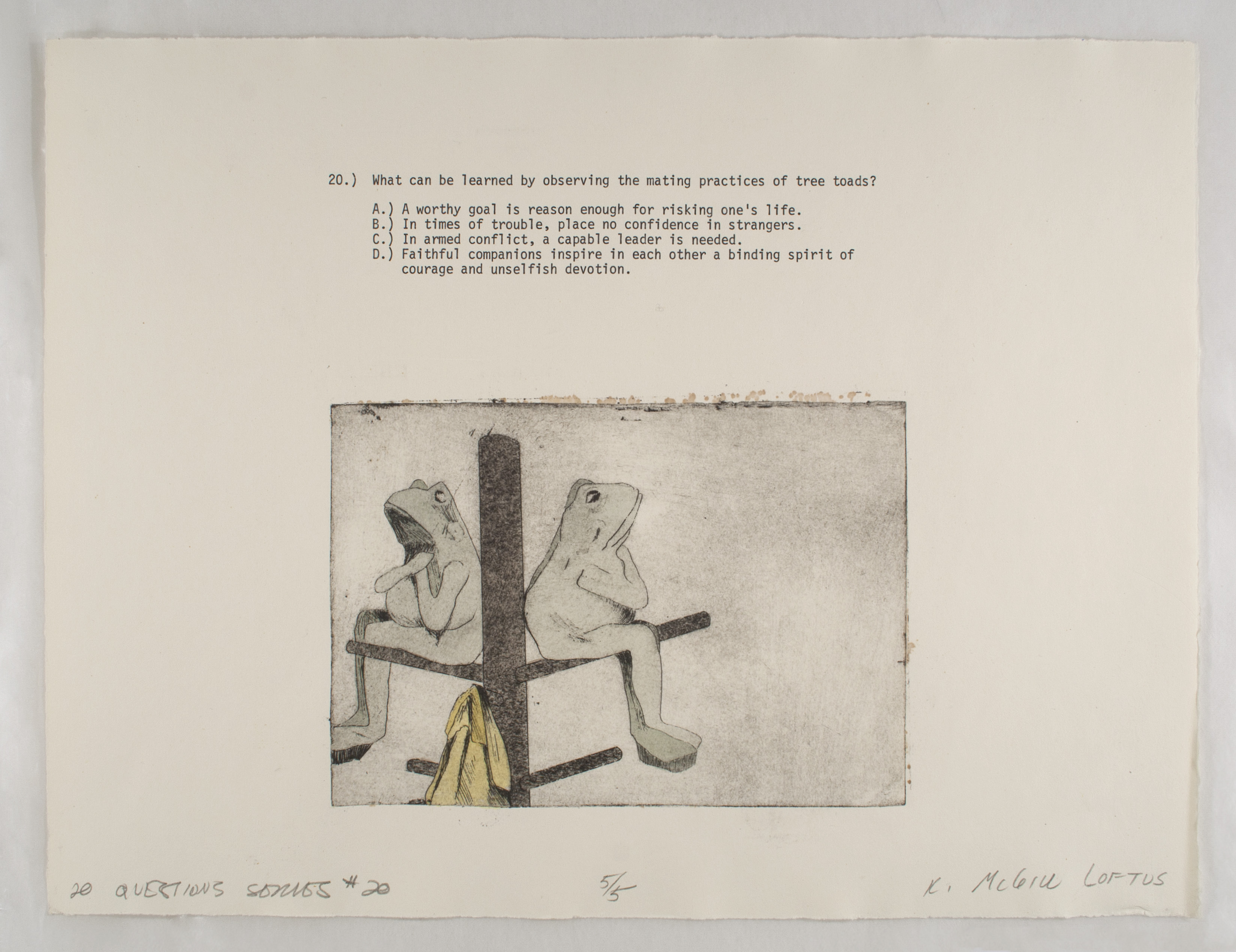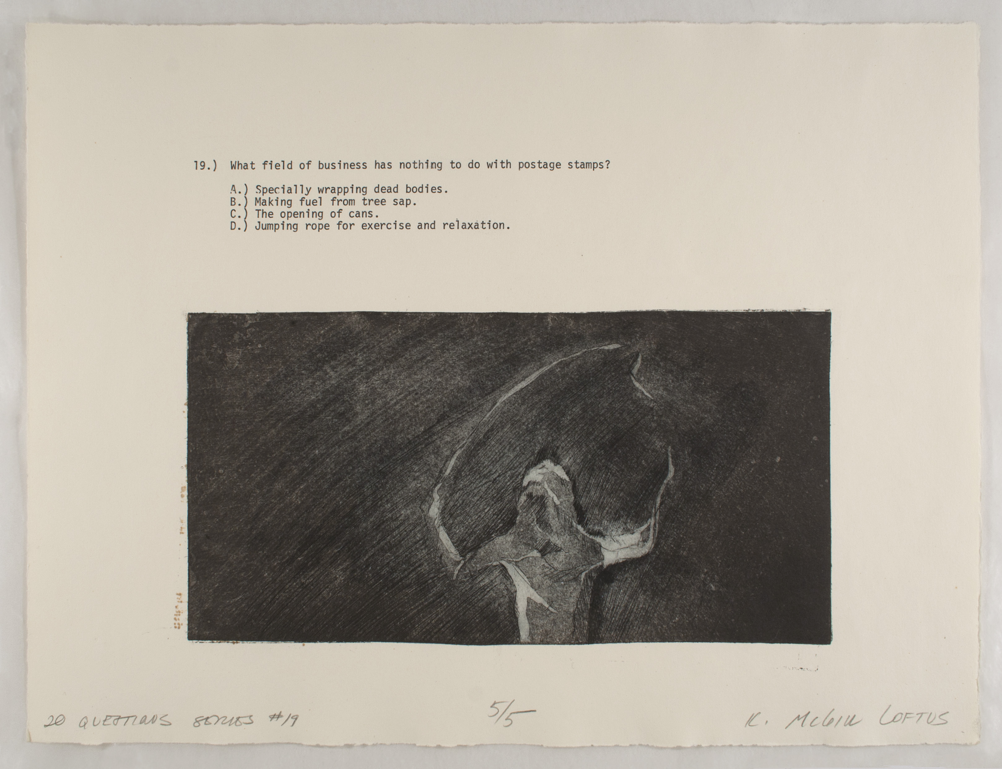 K. McGill Loftus, 20 Questions Series, n.d., portfolio of etchings with aquatint and collage, 20 sheets, each 10 x 13 inches (25.4 x 33 cm). © K. McGill Loftus / Photo: Laura Mitchell