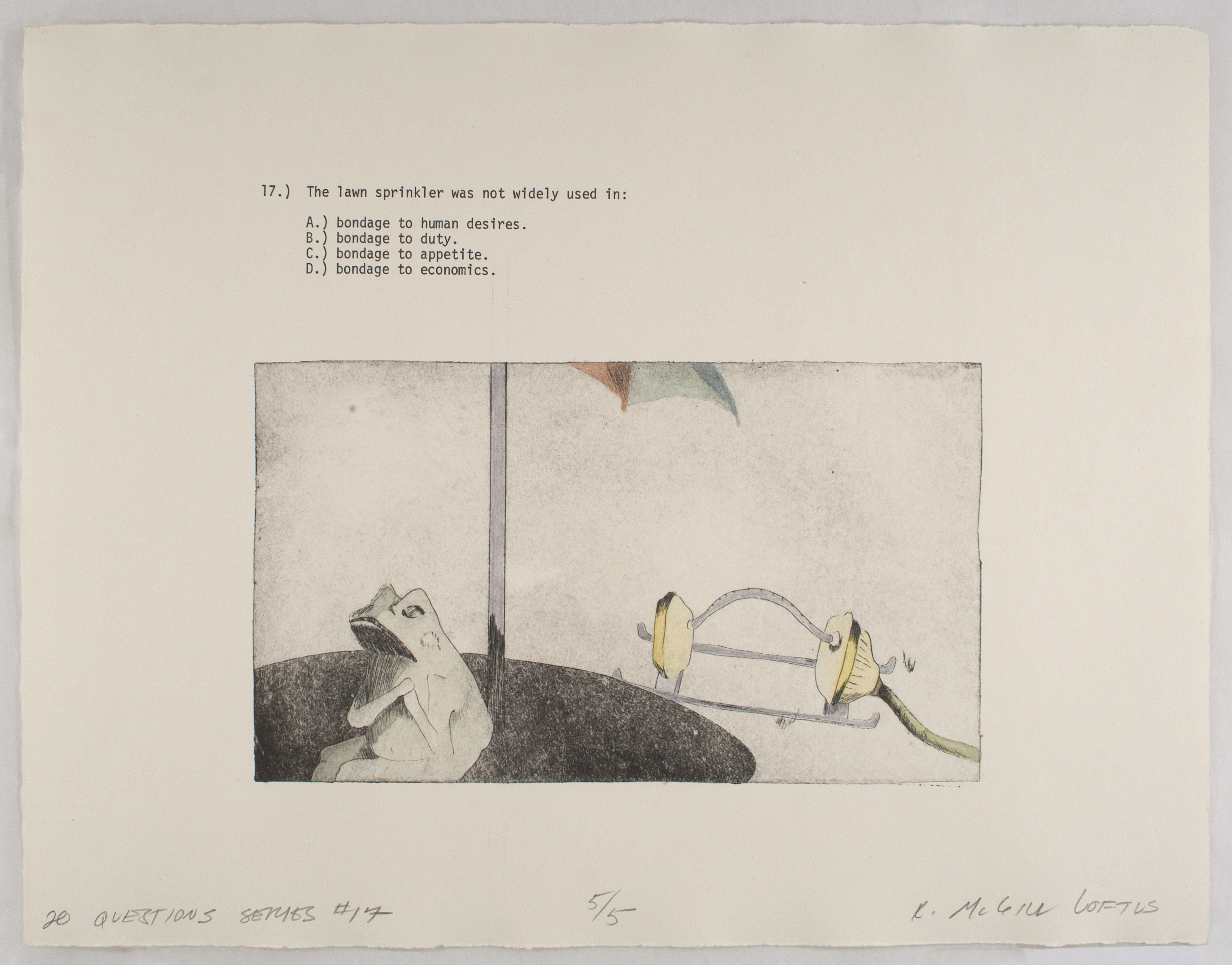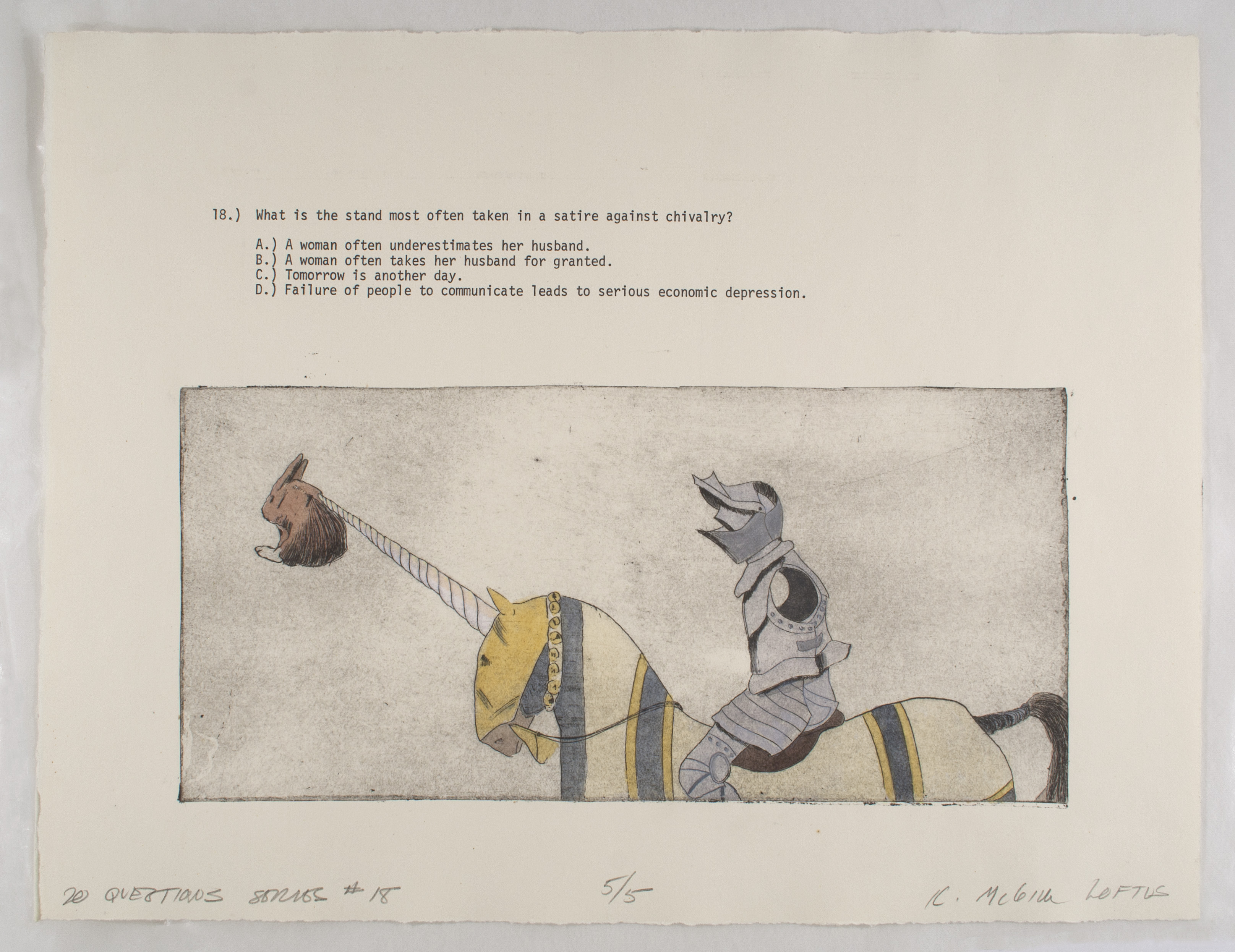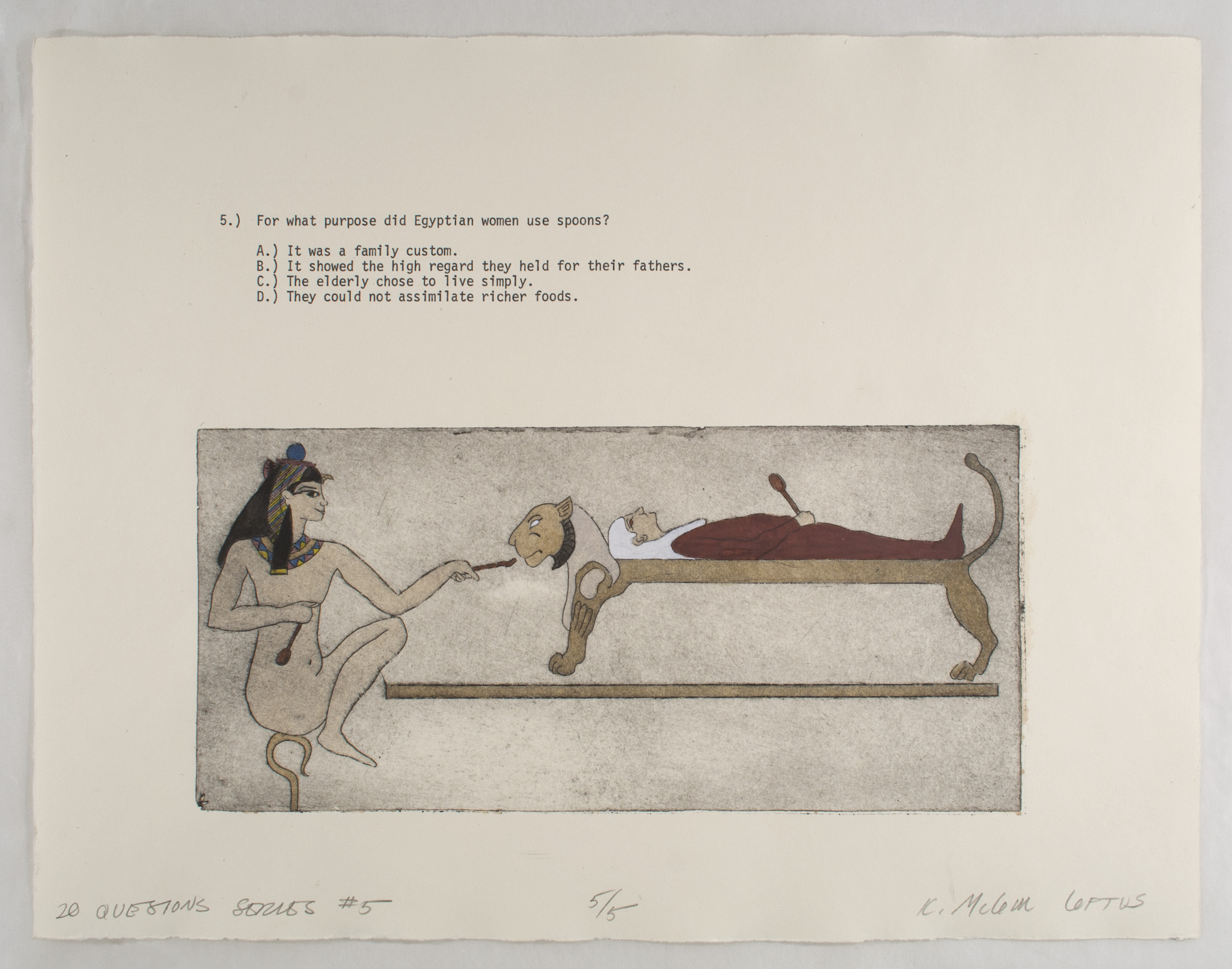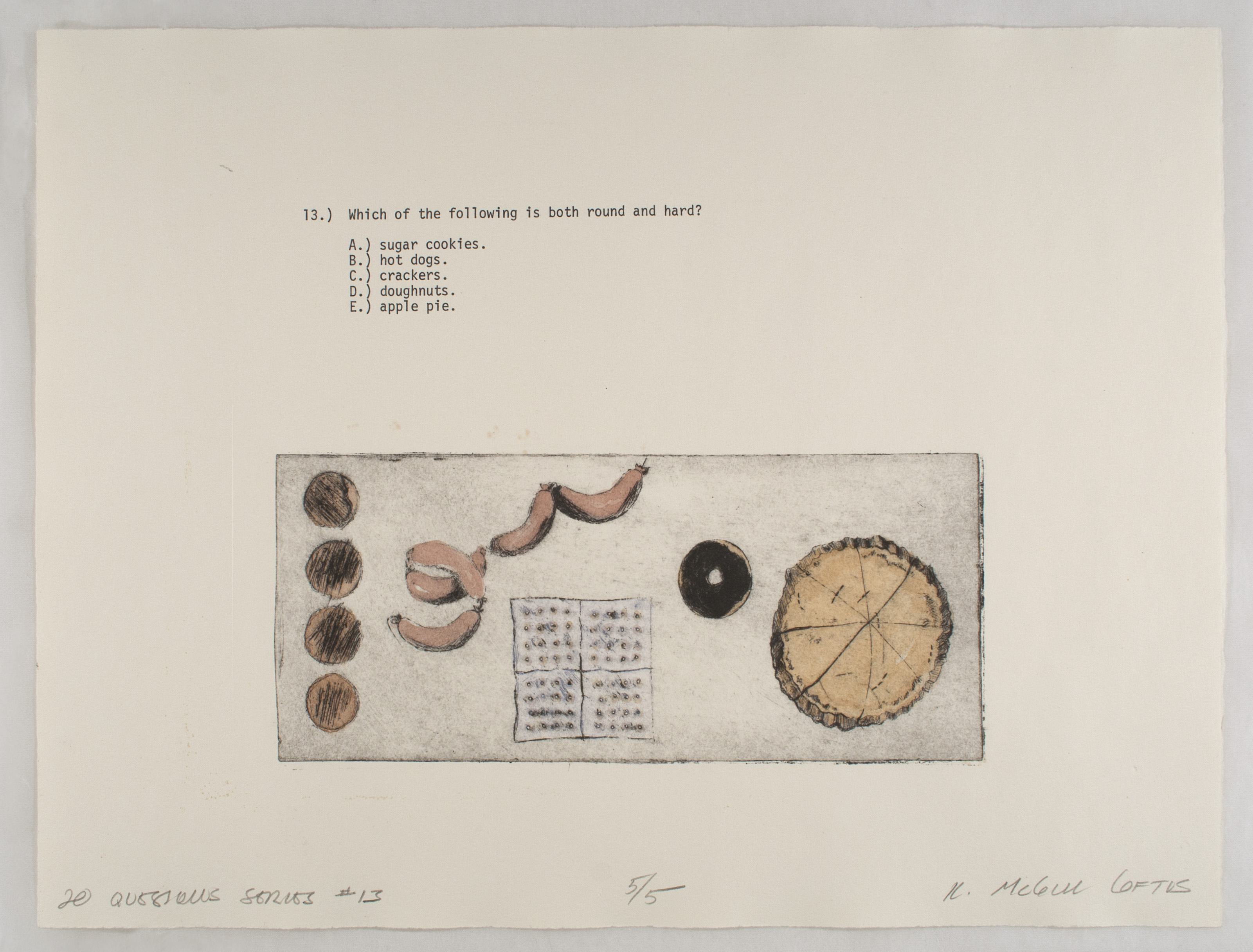 K. McGill Loftus, 20 Questions Series, n.d., portfolio of etchings with aquatint and collage, 20 sheets, each 10 x 13 inches (25.4 x 33 cm). © K. McGill Loftus / Photo: Laura Mitchell