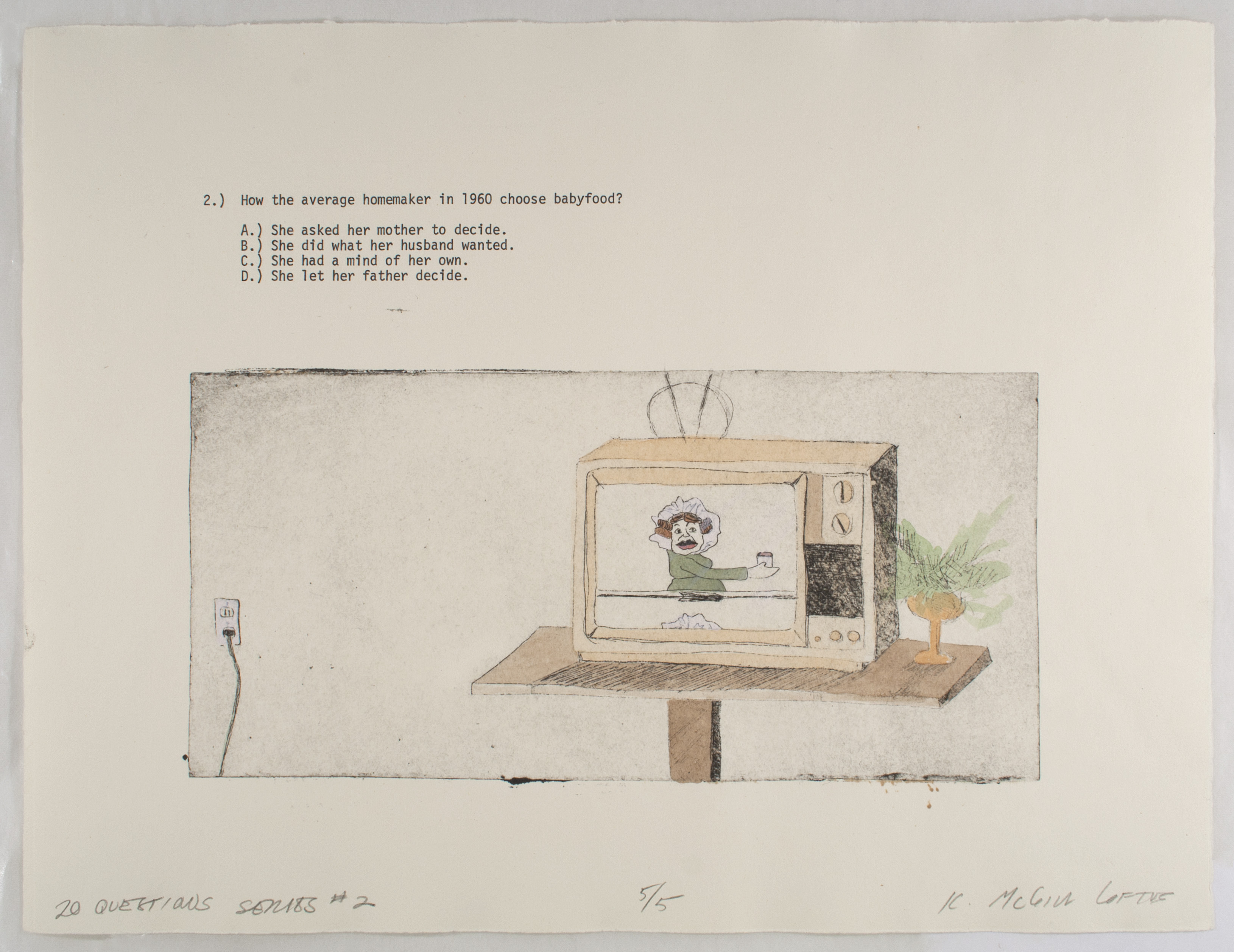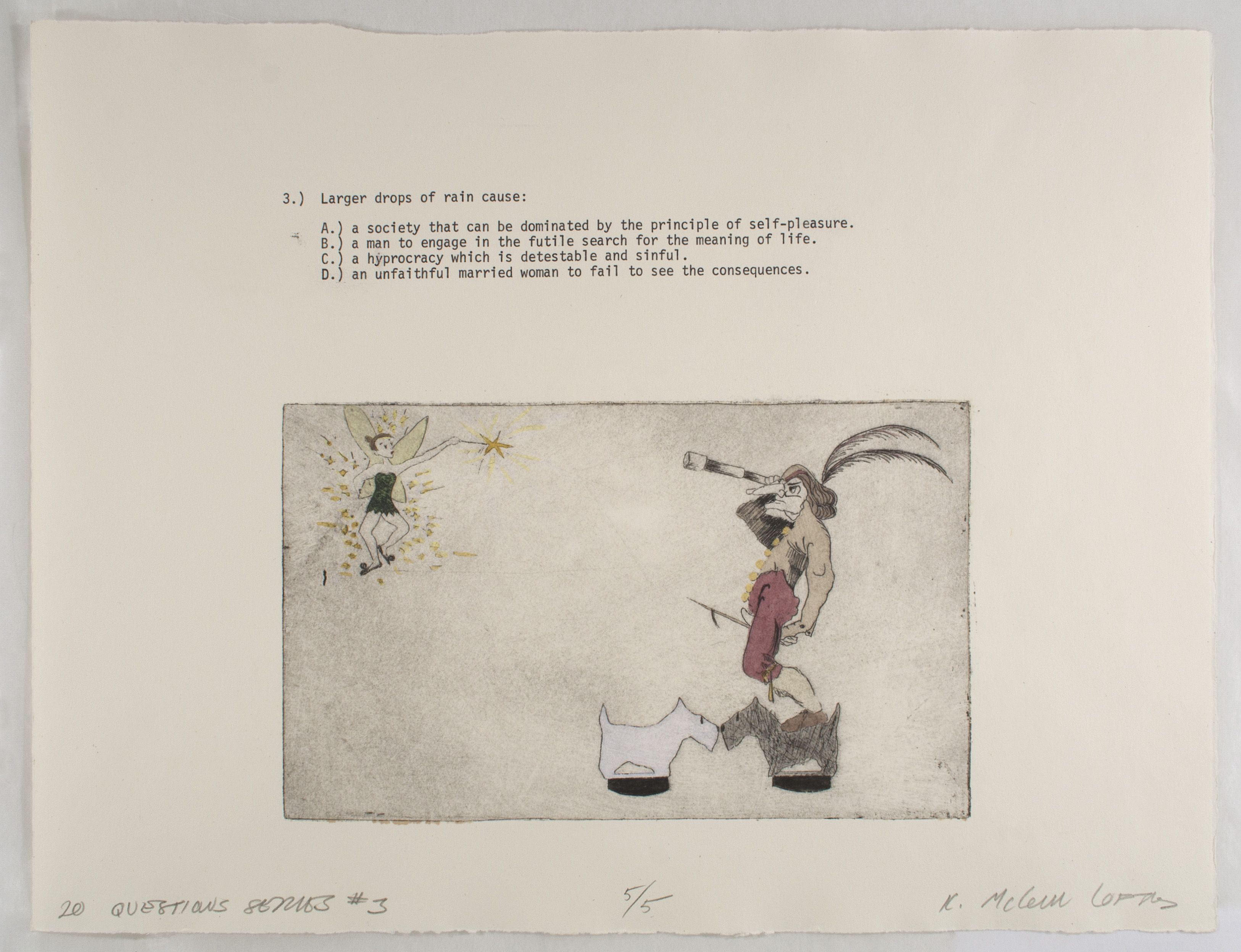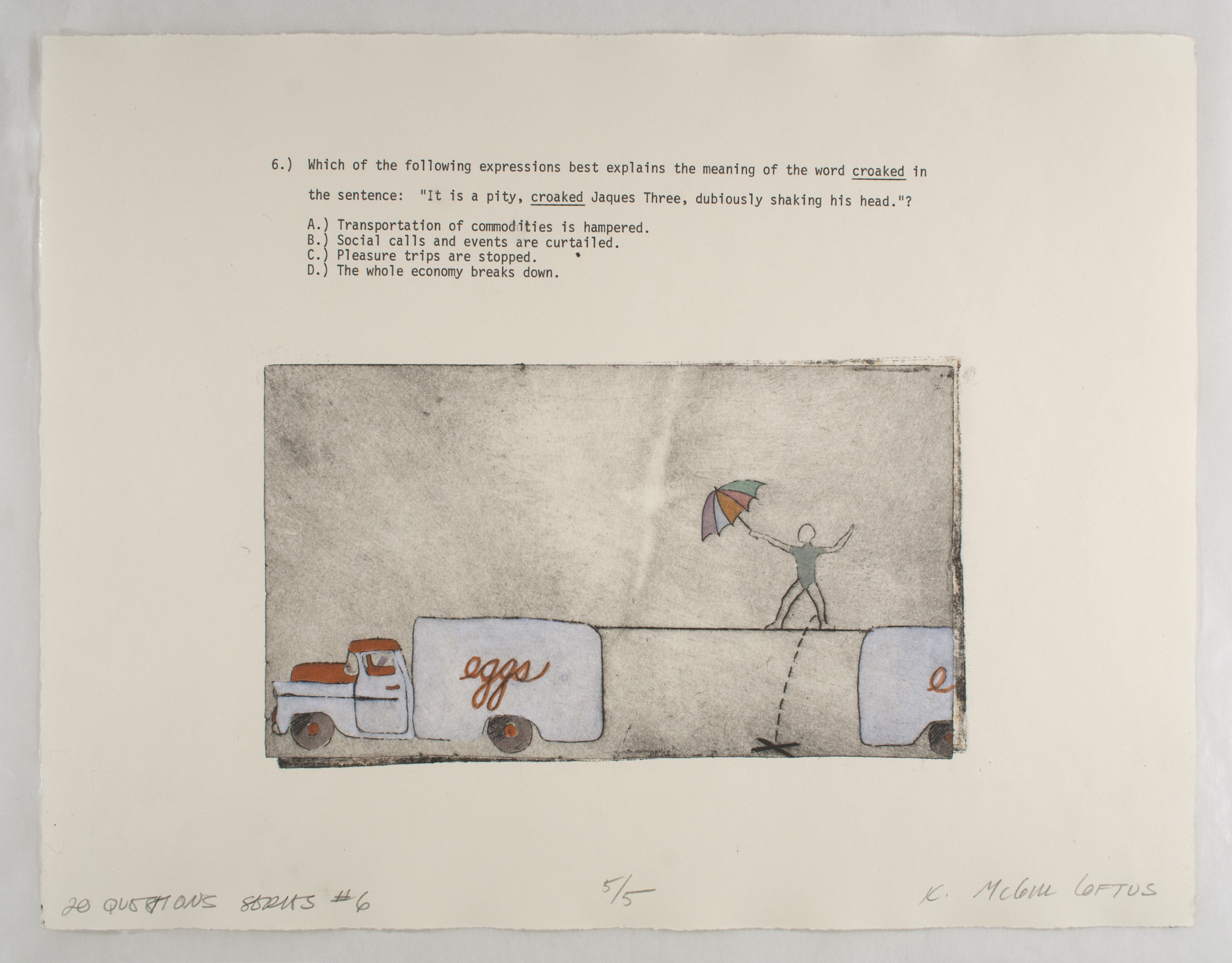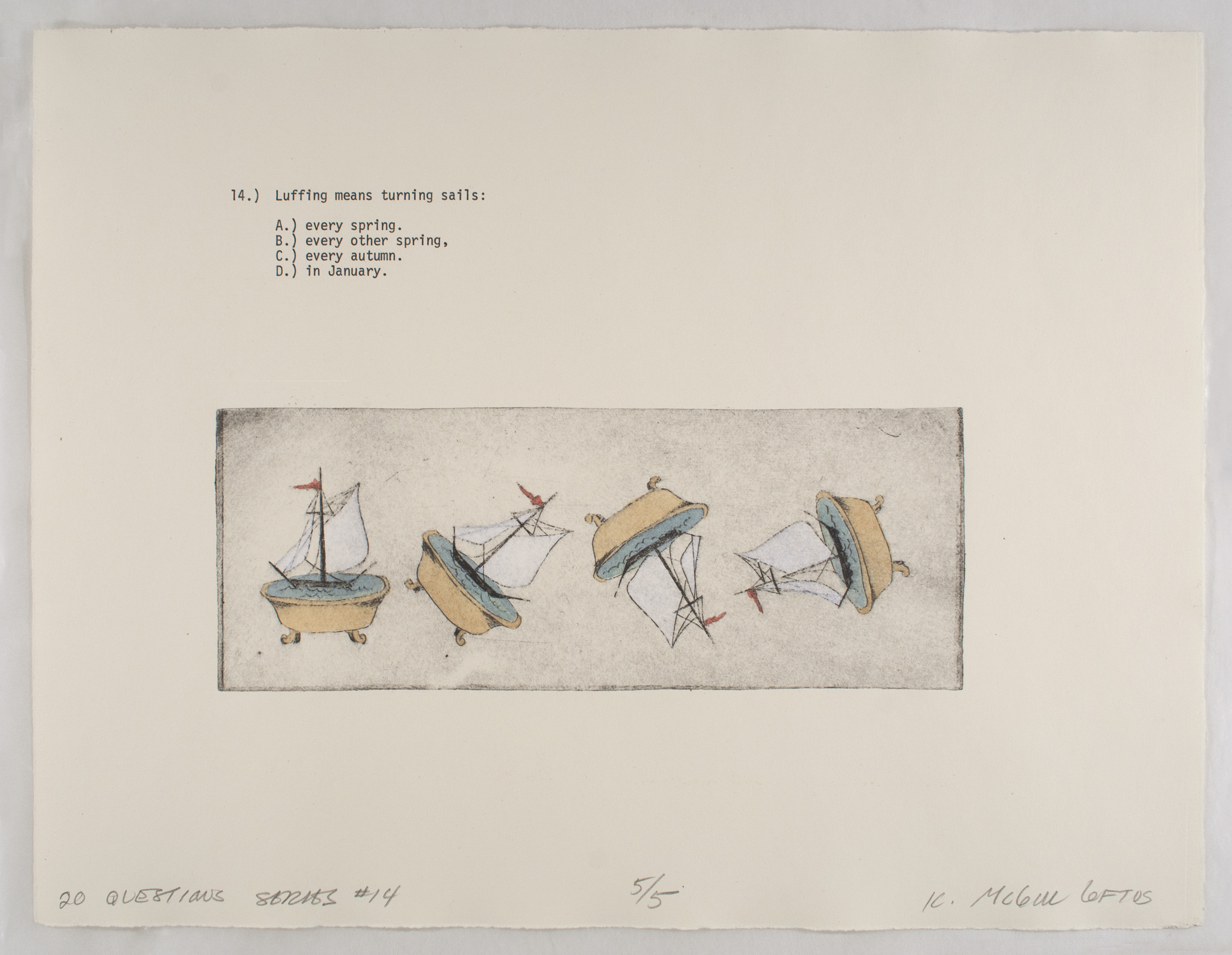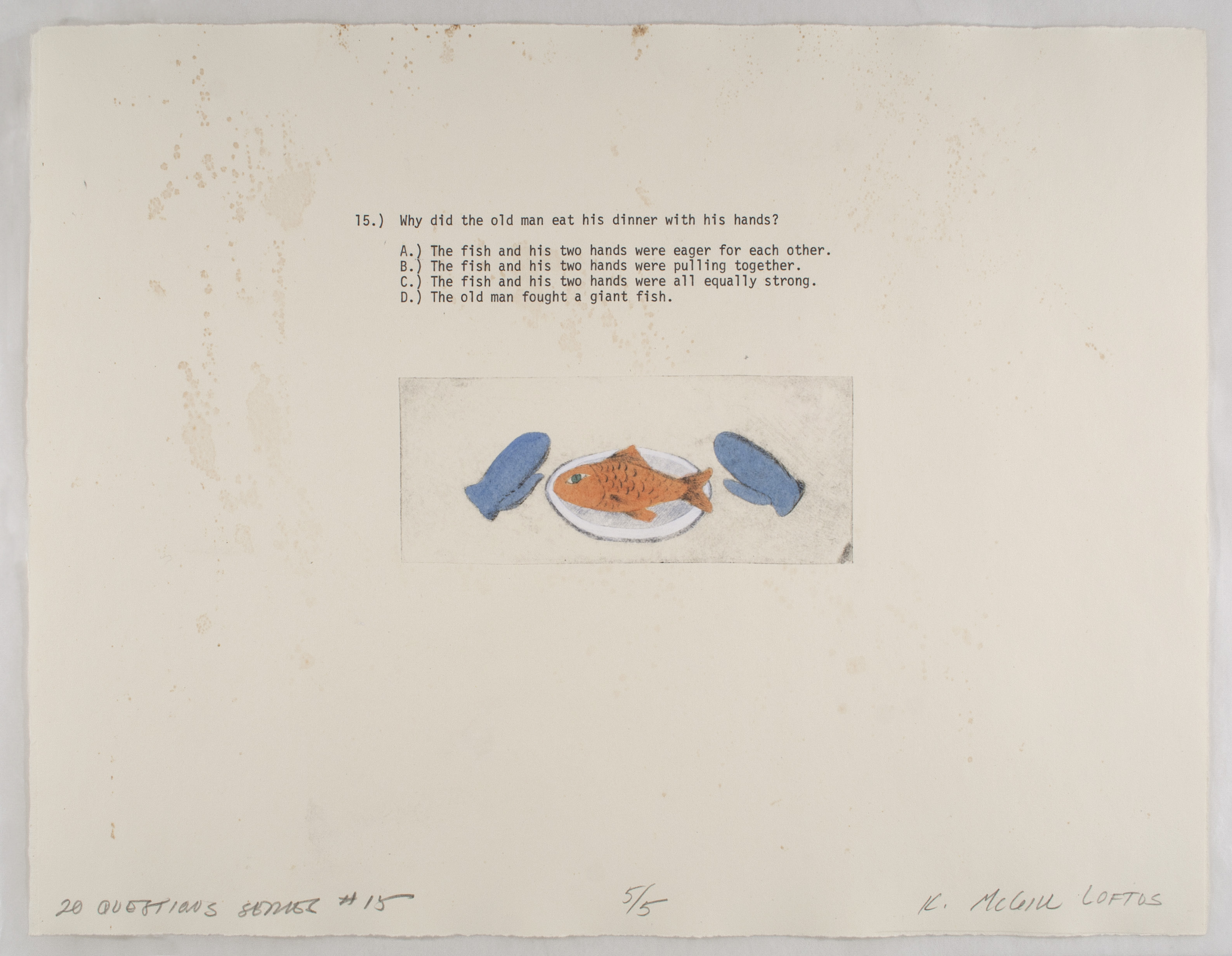 K. McGill Loftus, 20 Questions Series, n.d., portfolio of etchings with aquatint and collage, 20 sheets, each 10 x 13 inches (25.4 x 33 cm). © K. McGill Loftus / Photo: Laura Mitchell