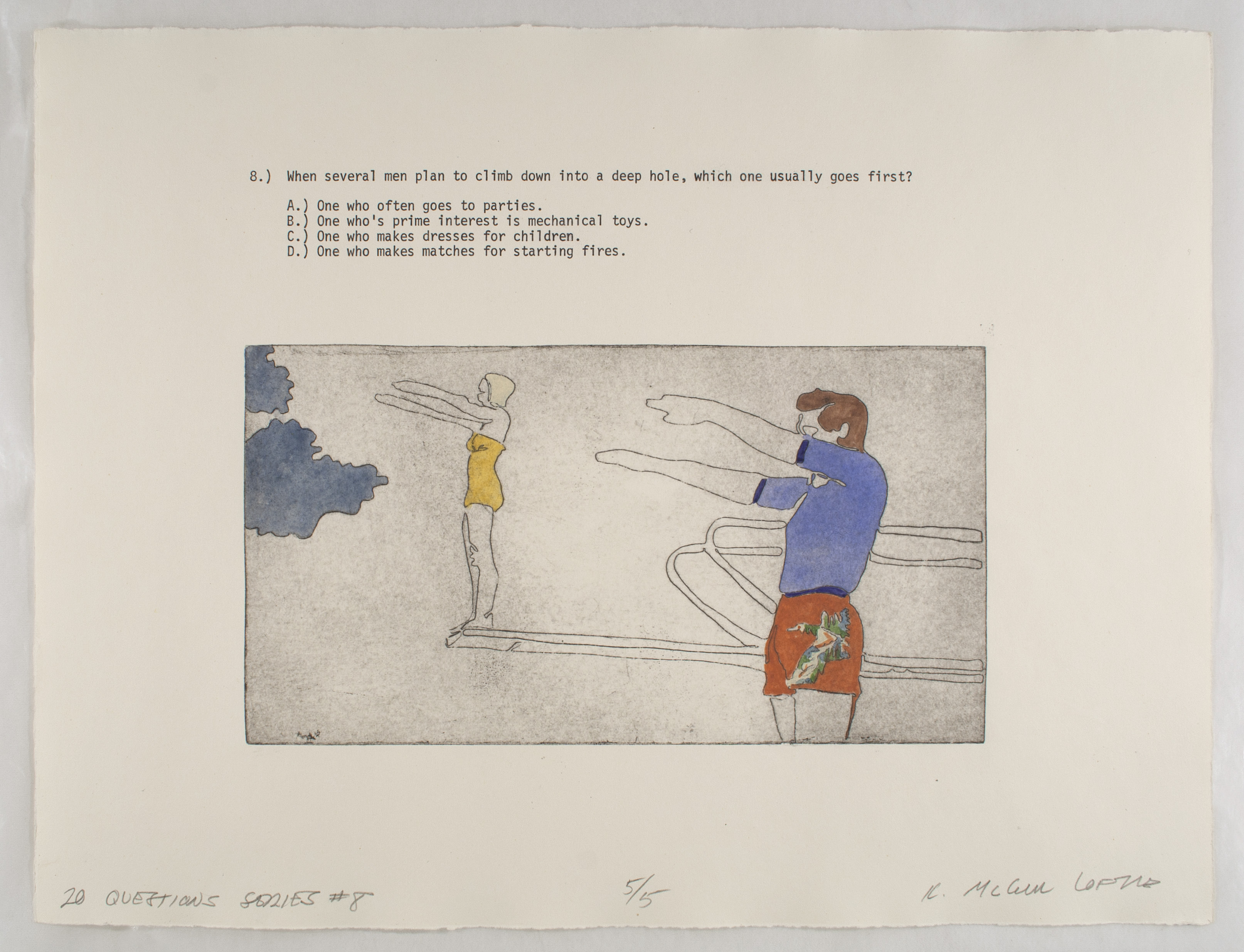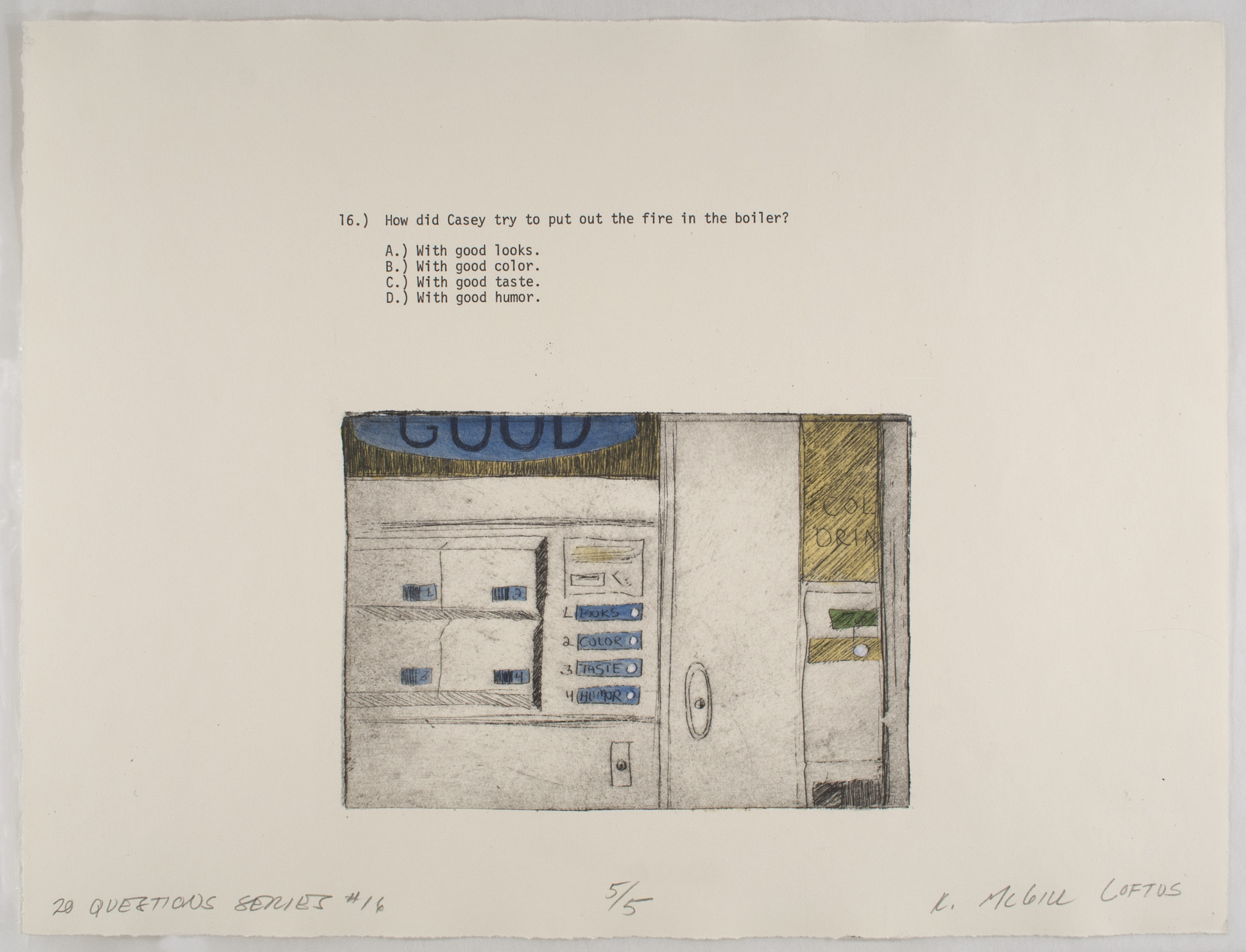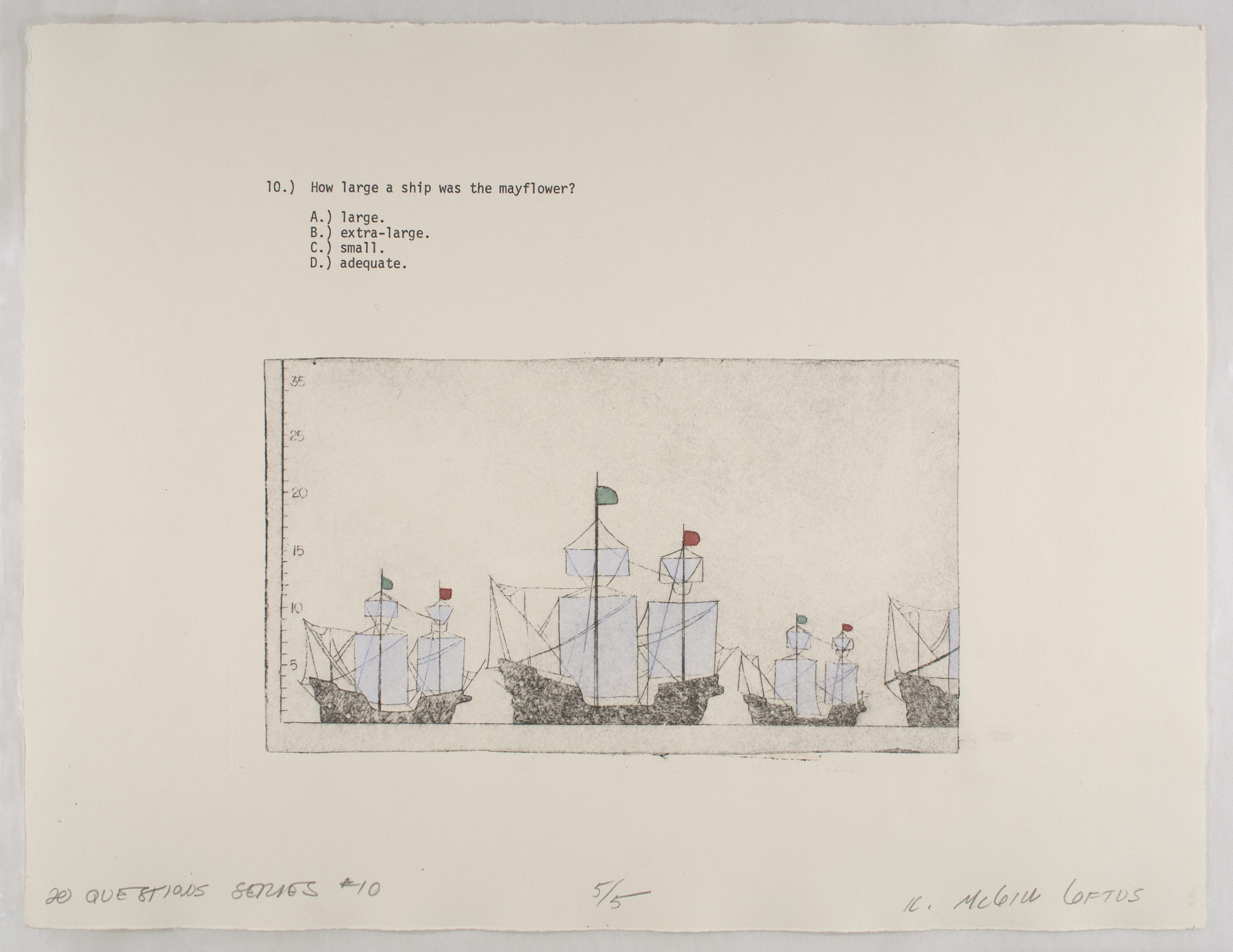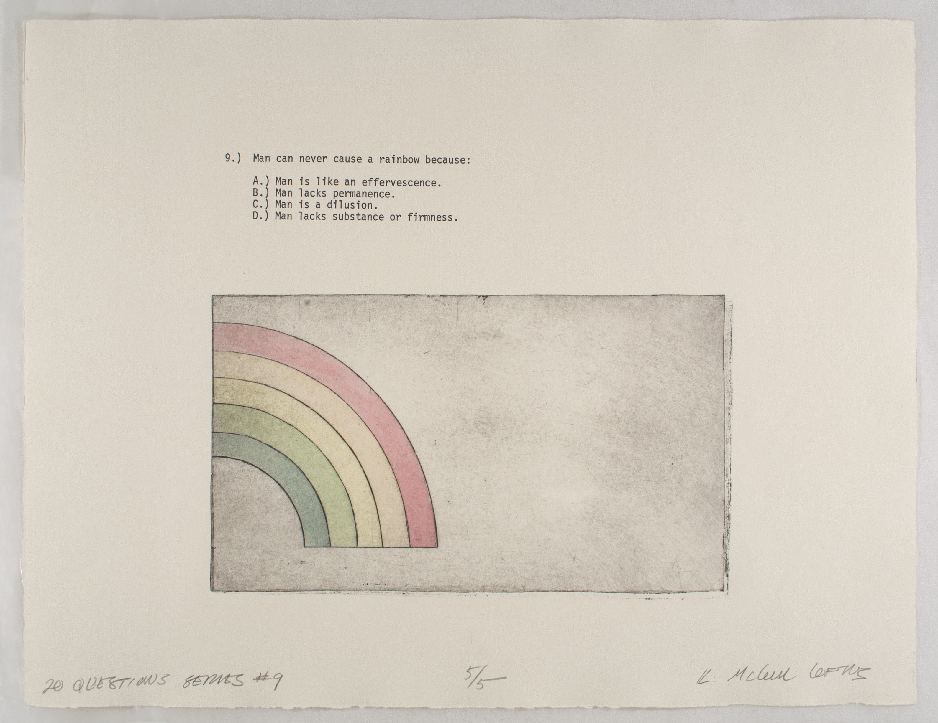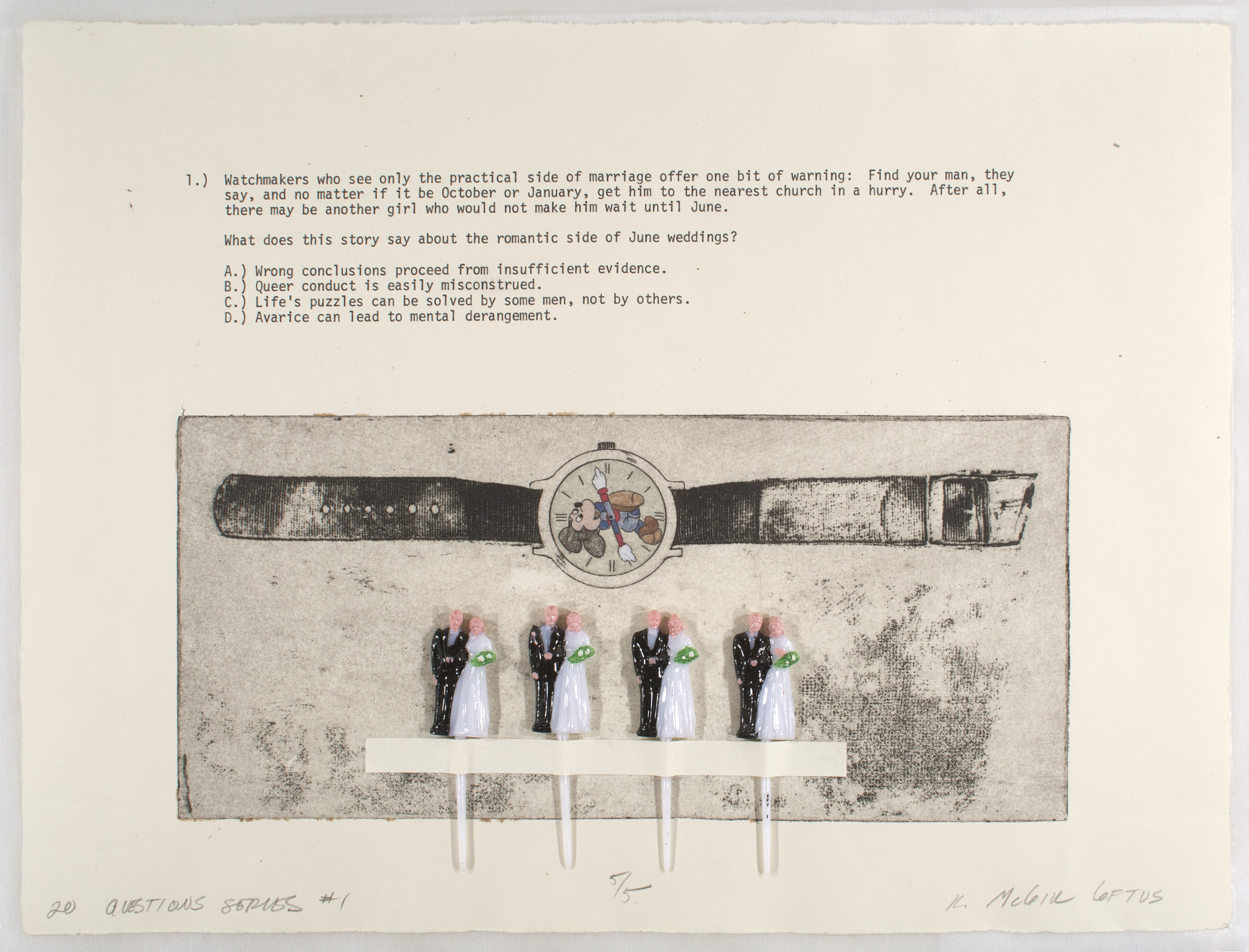 K. McGill Loftus, 20 Questions Series, n.d., portfolio of etchings with aquatint and collage, 20 sheets, each 10 x 13 inches (25.4 x 33 cm). © K. McGill Loftus / Photo: Laura Mitchell